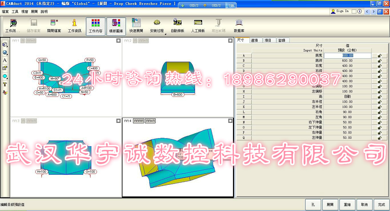 武漢華宇誠數控科技有限公司經過反復試驗,成功研制出了通風管道專用數控等離子切割機,配合專用的風管切割軟件,自動生成圖紙、導出加工程序。更加適應風管展開切割需求,功能更適應風管展開切割、操作更加便捷、成本進一步降低,讓利于客戶。操作人員所需要做的就是在軟件中選擇所需要的風管樣式,輸入所需要的尺寸,然后調出加工程序進行切割就可以了。既方便快捷、又精確實用。